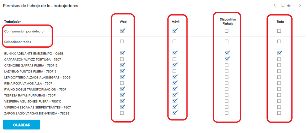 Para aplicar estos permisos, acceder al nuevo punto del menú Configuración – Permisos de fichaje.
