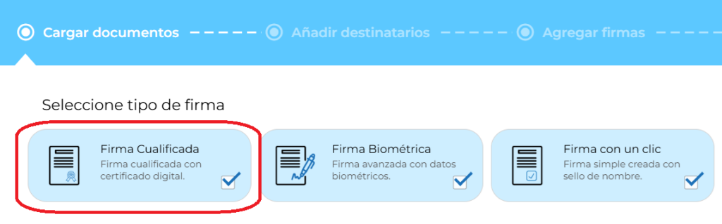 En el asistente, en la carga de documentos, se ha incluido este tercer tipo de firma, para seleccionar por los usuarios.