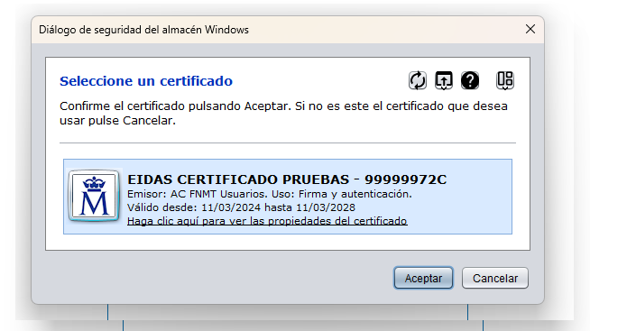 Este nuevo tipo de firma, permite el uso de un certificado digital del firmante, por ello, al firmar, aparecerá la siguiente pantalla para seleccionarlo: