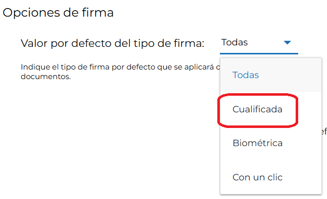 En la configuración de Documentos, se permite seleccionarla como tipo de firma por defecto.