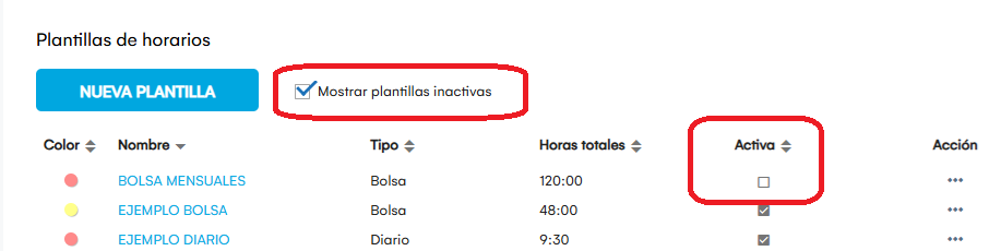 Desde esta versión, los horarios y calendarios marcados como NO ACTIVOS, permanecerán ocultos, tanto en la selección para aplicar como en el propio mantenimiento.