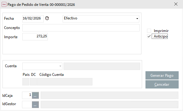 Desde aquí realizamos una entrega de dinero para el documento en el que nos encontramos y vemos una marca adicional para indicar que se trata de un Anticipo.