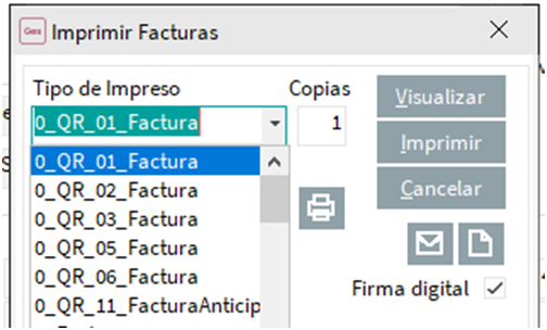 Una vez se activa la Versión Verifactu, solo se pueden imprimir facturas con formatos adaptados a QR: