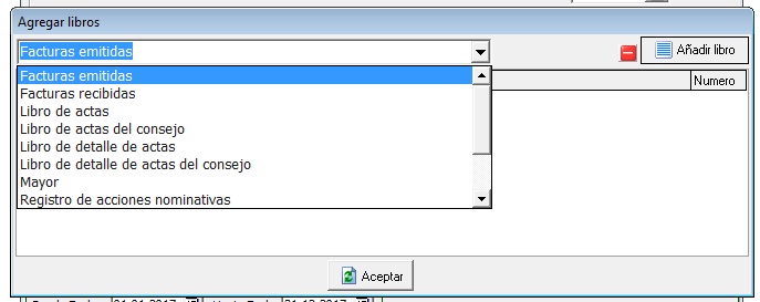 Se pueden añadir de forma manual libros adicionales, como el libro de actas, socios, mayor, etc. marcando la casilla “Añadir libros adicionales”.