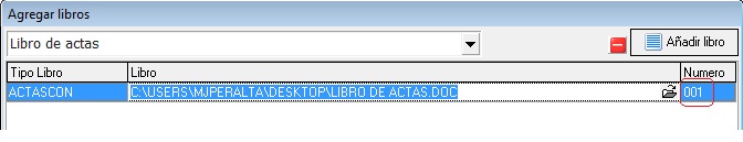 3. Una vez añadido, el programa le asigna por defecto el libro “001” con opción a cambiarlo