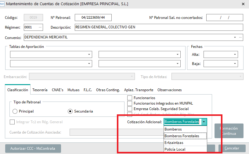 Este incremento en la cotización se trata a nivel del Patronal de la empresa indicando el colectivo correspondiente, por lo que se ha procedido a incorporar a los Bomberos Forestales.