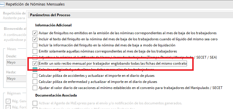 Con esta actualización se incorpora la posibilidad de emitir un único recibo salarial en el mes que se han llevado a cambios las modificaciones. Para realizar esta gestión se han de tener en cuenta;