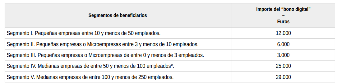 - Segmento 4: Para empresas de 50 a 99 trabajadores.